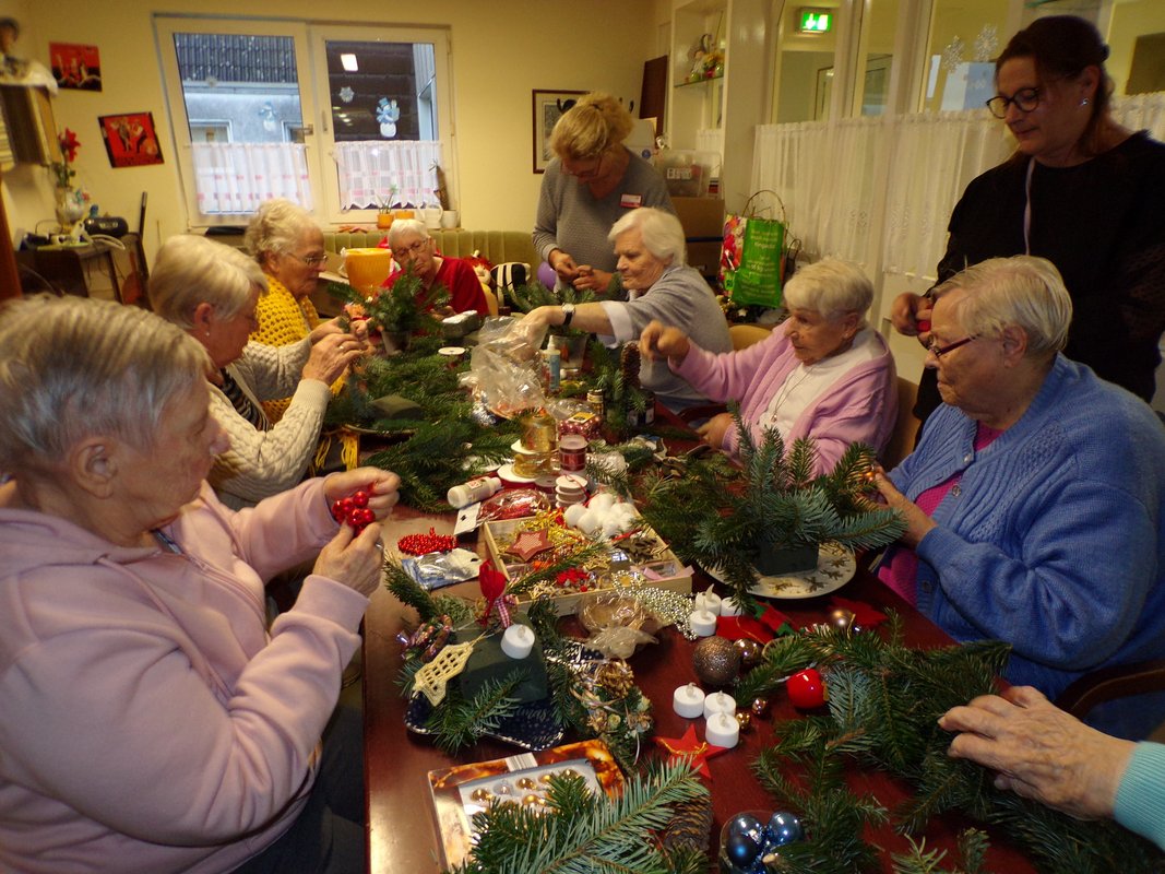 Wie in jedem Jahr, werden in der Vorweihnachtszeit im AWO Seniorenzentrum Bönen viele Aktivitäten angeboten, die auf die anstehenden Feiertage einstimmen. Eine sehr beliebte Aktion ist z. B. das Basteln von Adventsgestecken. Alle Interessierten haben hier die Möglichkeit eine ganz persönliche Dekoration für ihr Zimmer zu gestalten. Unter der Anleitung der Betreuungsassistentinnen wurde dieses Angebot auch 2025 wieder sehr gerne genutzt.
