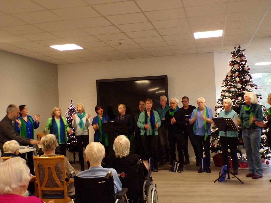 “Das war ein besonders schönes Nikolausgeschenk”, sagte die Beiratsvorsitzende Christel Henkel nach dem Auftritt des Gospelchors “Good News” im AWO Seniorenzentrum Bönen. Unter der musikalischen Leitung von Jens-Reinhard Wagenblaß wurden bekannte Gospelsongs, aber auch internationale Weihnachtslieder präsentiert. Melodien wie “Feliz Navidad” von José Feliciano oder “Happy X-mas” von John Lennon sorgten für eine große Begeisterung beim anwesenden Publikum.